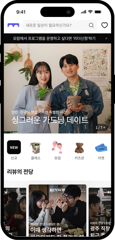 광주전남의 최대 규모, 모든 취미를 여기서! 취미로 만나볼래? 모람 원데이 클래스, 이색 데이트 코스, 비슷한 관심사를 가진 사람들과 색다른 모임도!